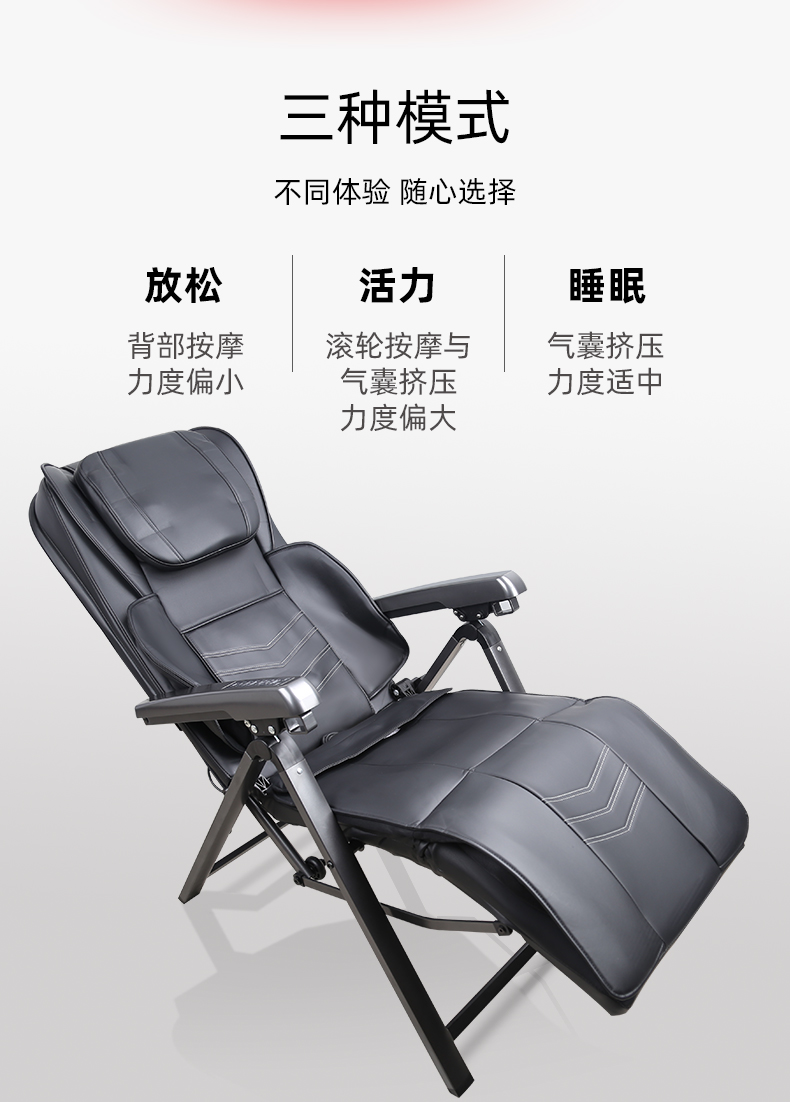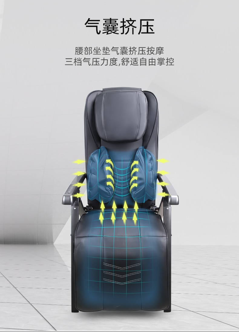 3.氣壓按摩:3檔可調(diào):腰部雙氣袋,大氣泵,腿部雙氣袋按摩,坐墊中間兩側(cè)3D按摩