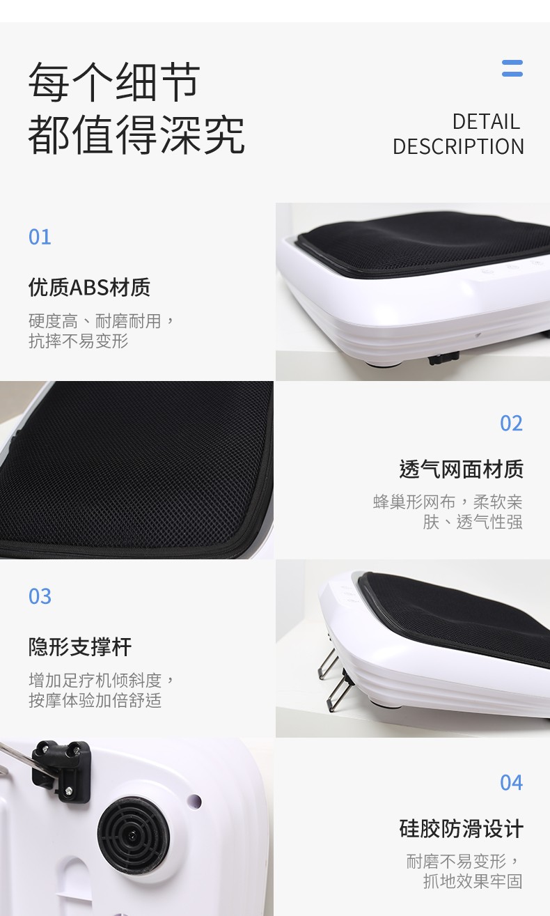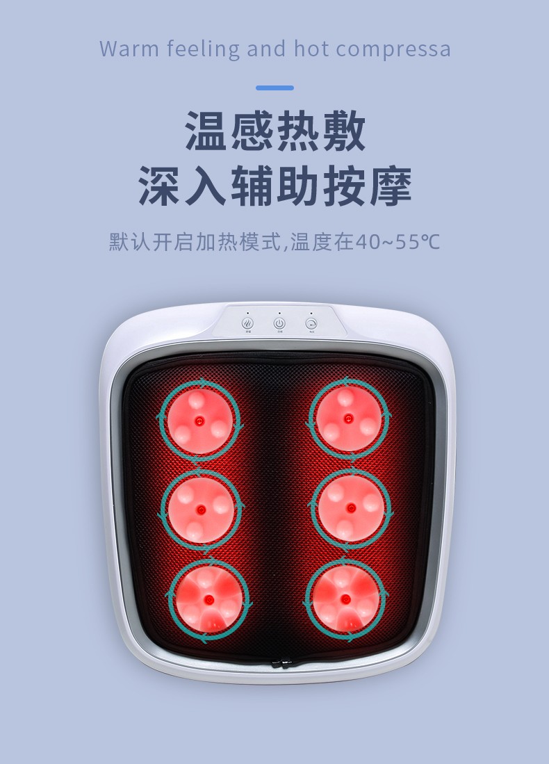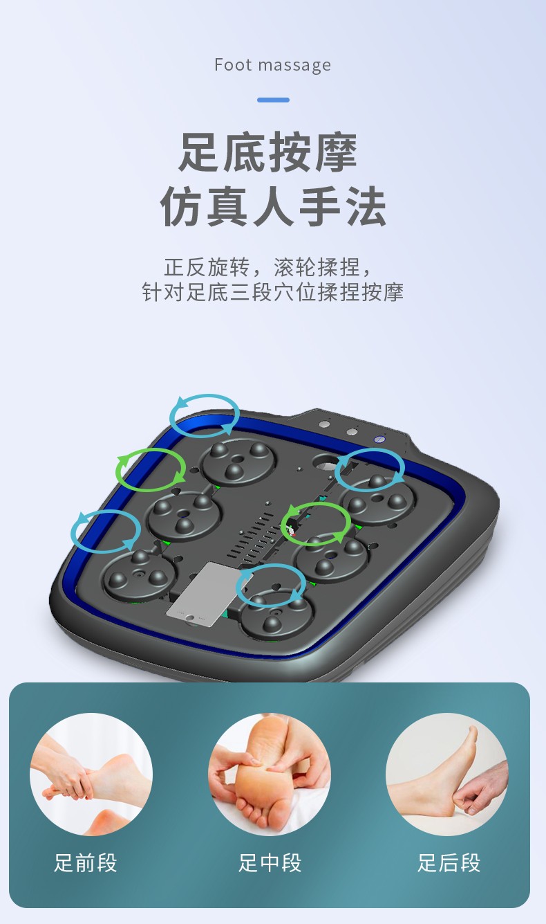 功能特征:腳底六個按摩頭,三檔力度調(diào)節(jié),按摩頭正反轉(zhuǎn),